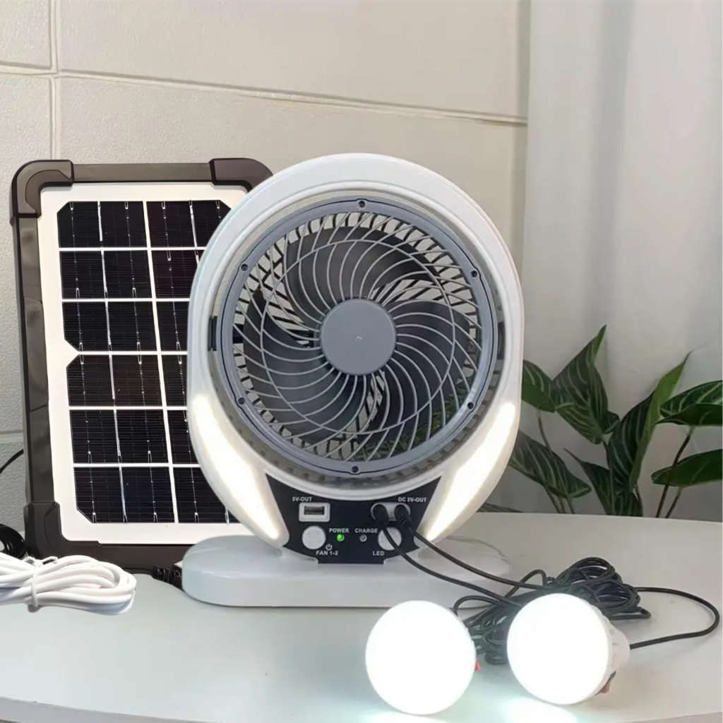 Το Solar Fan συνδυάζει την ελευθερία της ηλιακής ενέργειας με έναν ισχυρό, αθόρυβο ανεμιστήρα και δύο πρακτικές λάμπες LED για να έχεις πάντα δροσιά και άπλετο φως, όπου κι αν βρίσκεσαι. Χωρίς καλώδια, χωρίς πρίζες, χωρίς περιορισμούς!