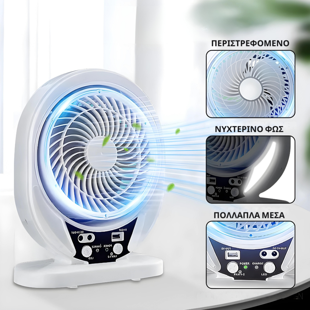 Δεν φοβάσαι διακοπές ρεύματος, ούτε τρέχεις να βρεις πρίζα. Ο Solar Fan δουλεύει παντού με τον ήλιο ή την μπαταρία του.